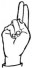 На ћирилици написано РАДИСЛАВ ТРИФУНОВИЋ састоји се из 18 слова [?]. Исписано ћириличном једноручном азбуком за глувонеме: